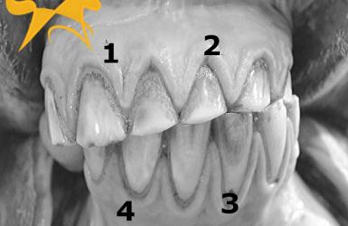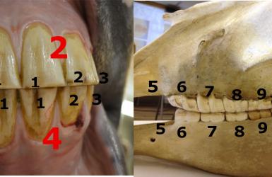 Die Zähne der Urpferde (erstes und zweites Bild oben) waren durch die natürliche Nahrungsaufnahme auch ohne Pferdezahnarzt ausbalanciert und frei von scharfen Kanten und Haken.
